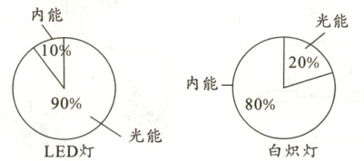 8. 如图所示是 “220 V 15 W” 的 LED 灯和 “220 V 15 W” 的白炽灯正常工作时将电能转化为内能和光能的占比图。当两灯均正常工作时, 下列说法正确的是 ()