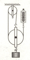 4. 小成在实验室组装如图所示的滑轮组进行实验探究, 实验过程如下: 先测得定滑轮的重力为 $0.2 \mathrm{~N}$, 动滑轮的重力为 $0.25 \mathrm{~N}$, 再使用组装好的滑轮组在 $10 \mathrm{~s}$ 内将质量为 $100 \mathrm{~g}$ 的钩码竖直匀速提升 $20 \mathrm{~cm}$, 此过程中弹簧测力计的示数为 $0.5 \mathrm{~N} · g$ 取 $10 \mathrm{~N} / \mathrm{kg}$, 下列说法正确的是