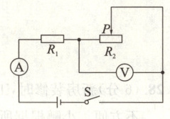 (2) 选择合适的电表量程, 从最右端开始缓慢移动滑片 $P$, 在确保电路所有元件均安全使用的情况下, 使滑动变阻器 $R_2$ 的功率占电路总功率的比值最小, 此时滑动变阻器 $R_2$ 接入电路的阻值;