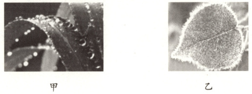 B.图乙中,树叶上霜的形成是凝固现象