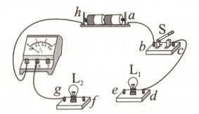 12.如图所示的实验电路,还有部分导线未连接,字母$a$、$b$、$c$、$d$、$e$、$f$、$g$、$h$表示各元件的接线柱。下列操作能让灯$L_1$、$L_2$都亮起来的是 (