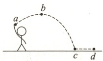 11.如图所示是小慧同学掷实心球的场景,图中虚线表示球的运动轨迹,球从$a$点上升到最高点$b$后下落到地面$c$点,然后继续运动到$d$点停止。下列说法正确的是 (