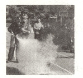 7. 如图所示是学校举行消防演练灭火时的情景,对涉及的物理知识分析正确的是 (