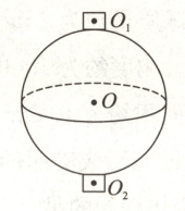 19. (2分)如图所示,两物体位于地球两极上,画出两物体所受重力的示意图。(其中O₁、O₂为两物体重心,O为地心)