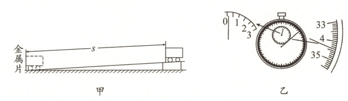 (1)停表的读数为小刻盘和大刻盘之和,小刻盘的分度值为$0.5 min$,表针在0与1之间,偏向0一侧,读数为$0 min$;大刻盘的分度值为$0.1 s$,读数为$4.4 s$,则停表的读数为$4.4 s$。