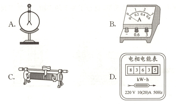 3.B 解析:A.验电器是检验物体是否带电的仪器,故A错误;B.电流表是测量电路中电流大小的仪表,故B正确;C.滑动变阻器是用来改变电路中的电阻,故C错误;D.电能表是测量电流在一段时间内做功多少的仪表,故D错误。故选B。