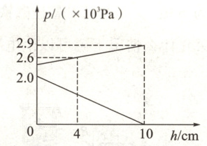 14. 质量分布均匀的实心正方体A、B置于水平地面上,将B沿水平方向截取高为h的柱体,并将截取的柱体叠放在A上,改变截取的高度h,得出A、B对地面的压强p与截取高度h的关系如图,g取10N/kg。下列结果正确的是(