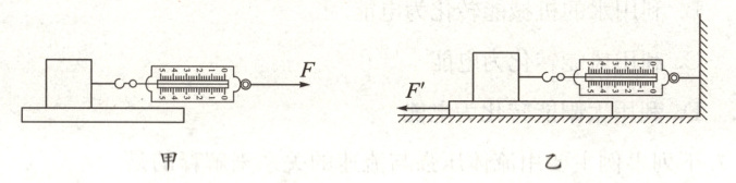 19. 在“测量滑动摩擦力实验中,向右匀速拉动滑块如图甲所示、向左拉动木板如图乙所示。两种方法中,选择