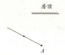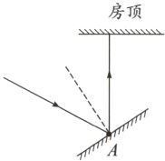 23. (3分)一束阳光斜射入房中,小明在A点用平面镜把该光竖直反射向房顶,请在图中画出平面镜的位置和反射光线。