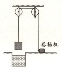 28. (11分)某锻造厂利用卷扬机将一圆柱形工件(污垢的质量和体积忽略不计)吊入柱形清洗池中清洗,如图所示。已知工件的质量为90kg,高度为50cm,清洗池底面积为2000cm²,深度为80cm;未放入工件时,清洗液的深度为60cm,密度ρ=0.8×10³kg/m³,g取10N/kg。求: