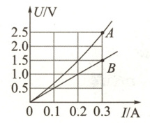 9.B 解析:A、D.通过定值电阻$R$的电流随两端电压的变化关系为一过原点的直线,定值电阻$R$的$U-I$图象为$B$,灯泡$L$的$U-I$图象为$A$;灯泡$L$的额定电压为$2.5$V,可知正常发光时的电流为$0.3$A,将$R$与灯泡$L$串联在电源两端,串联电路各处的电流都相等,灯泡$L$正常发光,$R$两端的电压为$1.5$V,根据串联电路的规律可知,$U = 1.5V + 2.5V = 4V$,故A、D错误;B.灯泡$L$的额定功率$P_L = U_LI_L = 2.5V × 0.3A = 0.75W$,故B正确;C.串联电路各处的电流都相等,根据$P = UI$可知,在电流不变时,电功率与电压成正比,故$R$与灯泡$L$的功率之比为$1.5V:2.5V = 3:5$,故C错误。故选B。