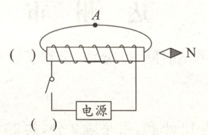 20. (3分)如图所示,开关闭合后,小磁针静止时右端为 N 极。请在对应括号内和 A 点分别标出: