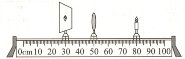 (2)如图所示,蜡烛与80.0cm处对齐,凸透镜与50.0cm处对齐,此时u=80.0cm-50.0cm=30.0cm=300mm。