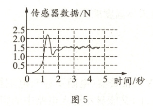(4)小明想到自己在做家务时,把被子叠好后拉动,比被子在平铺状态下拉动起来更轻松,于是准备探究滑动摩擦力的大小与接触面积是否有关。为了提高测量精度,小明利用力传感器和传送带设计了如图$4$所示的装置,保持传送带的转速不变进行实验,计算机记录木块平放和侧放时的传感器数据分别如图$5$、图$6$(木块平放和侧放时的底面积不同)所示。