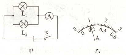9. 图甲是由小灯泡L₁、L₂组成的并联电路,各元件均正确连接,已知闭合开关S后,通过L₁的电流为0.4A,电流表的示数如图乙所示,下列判断正确的是 (