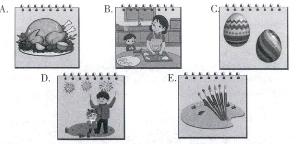 (B) 听音,根据你所听到的对话内容,为下列图片重新排序。对话读两遍。