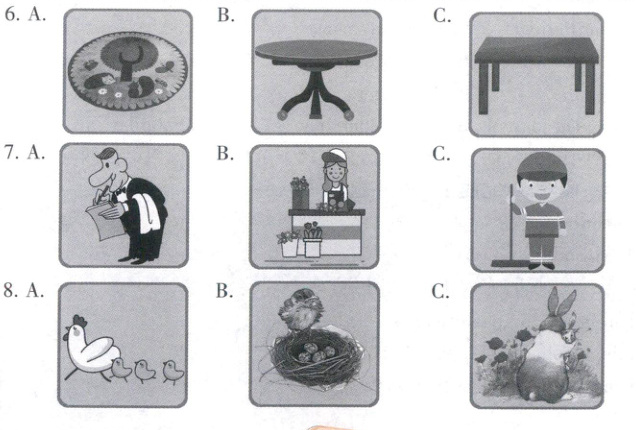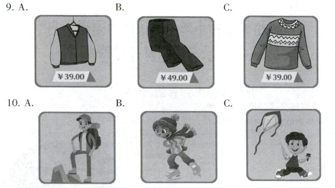 听音,选出与你所听到的句子意思相符的图片。每个句子读两遍。