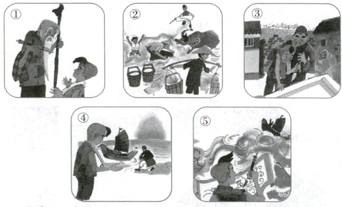 When Hop painted a river, it became a real one. Then the people and the animals had water to drink. So Ho painted lots of good things for the poor people. A rich man ordered Ho to paint a mountain of gold. Ho did that. But he also painted a blue sea around it. Ho painted a ship in the sea. When the rich man got on the ship, Ho painted a storm. It took the rich man far away.