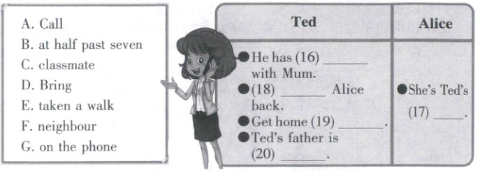 ( B) 听音, 根据你所听到的对话内容, 从所给的 A—G 中选择正确的选项完成下面的信息表格( 其中有两个多余选项)。对话读两遍。
