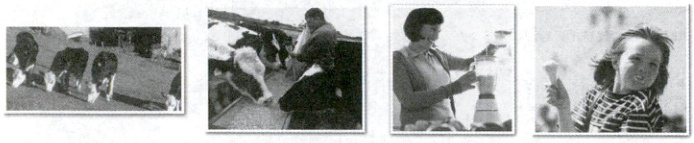 This is the farmer, Mr James. He’s looking after the cows. He gets milk from his cows every day. He can make cheese, yogurt and ice cream from the milk.