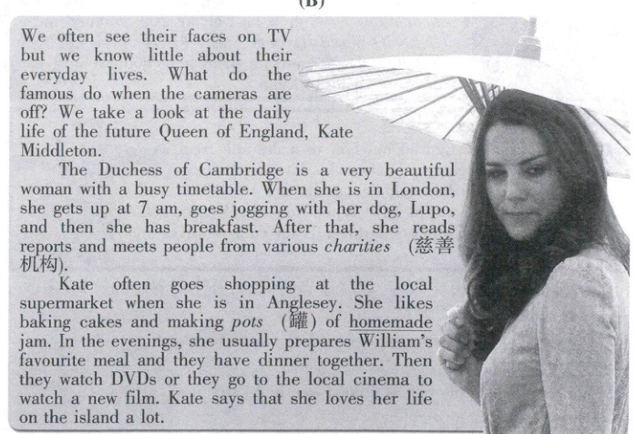 at the local supermarket.74. Kate and William usually watch DVDs or go to the movies after they have