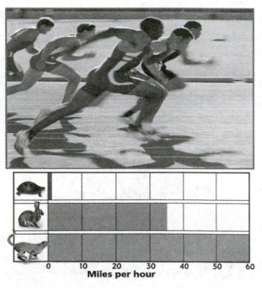 69. The graph shows that the fastest animal is (the leopard / the rabbit).