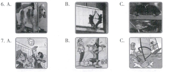 听音,选出与你所听到的句子意思相符的图片。每个句子读两遍。