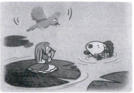 One night, an ugly toad (癞蛤蟆) sees Thumbelina. "She's pretty. I will