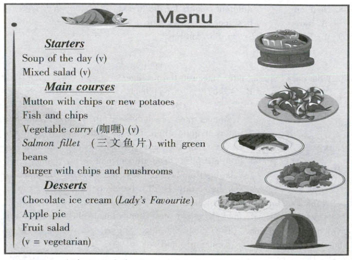76. Yes; can 77. new potatoes 78. She will order chocolate ice cream. / Chocolate ice cream. 79. She’s on a trip. / On a trip. 80. B