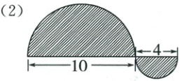 (2)$\frac{1}{2} × (3.14× 10 + 3.14× 4) + 10 + 4 = 35.98(dm)$
