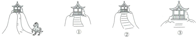 5. 一匹小马上山,小马在上山过程中看到的下面右边三幅图的先后顺序为(