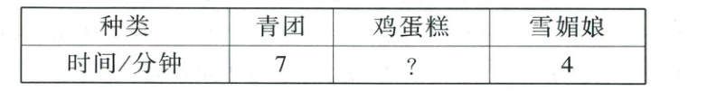 (2)小阳做了 6 个鸡蛋糕用了 36 分钟,捏一个雪媚娘比做一个鸡蛋糕少用多长时间?(6 分)