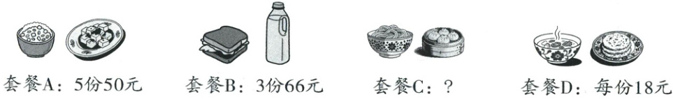 (3)买4份套餐B的钱刚好可以买2份套餐C,每份套餐C多少元? (4分)