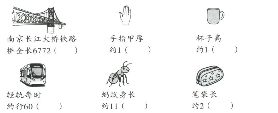 4. 在括号里填上合适的单位。
