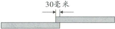 6. 将两根长度都是40厘米的短木棒拼接成一根长木棒(如图),拼接处共用去30毫米。拼接后的长木棒的长度是(