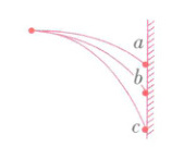 从同一点水平抛出三个小球分别撞在竖直墙壁上$ a $点、$ b $点、$ c $点,则(
