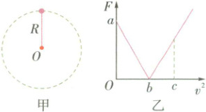 (多选)如图甲所示,轻杆一端固定在$O$点,另一端固定一小球,现让小球在竖直平面内做半径为$R$的圆周运动。小球运动到最高点时,杆与小球间弹力大小为$F$,小球在最高点的速度大小为$v$,其$F - v^2$图像如图乙所示。不计空气阻力,则(