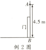 例2 如图,有一盏由传感器$A$控制的灯,装在门上方离地面$4.5\ m$的墙上,任何东西只要移至该传感器周围$5\ m$及$5\ m$以内,灯就会自动发光,一位身高$1.5\ m$的学生要使灯刚好发光,则他与门的距离为