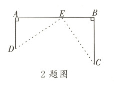 2. 如图,直线$AB$是一条高速公路,$C$,$D$是两个村庄,它们到高速公路的距离分别为$AD = 10\ km$,$BC = 15\ km$,且$AB = 25\ km$。现要在$A$,$B$两点之间建一个服务站$E$,使得两个村庄到服务站的距离相等,那么服务站应距离$A$点
