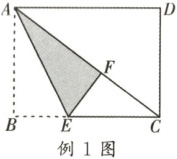 例 1 如图,长方形纸片 $ABCD$ 中,已知 $BC = 8$,折叠纸片使 $AB$ 边与对角线 $AC$ 重合,点 $B$ 落在点 $F$ 处,折痕为 $AE$,且 $EF = 3$,求 $AB$ 的长。