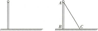 例 2 某数学课外活动小组的同学测量学校旗杆 $AB$ 的高度时,发现升旗的绳子(无弹性)长度比旗杆多 $1$ 米,当他们把绳子拉直,绳子末端 $C$ 刚好接触地面时,此时绳子末端 $C$ 与旗杆的距离为 $5$ 米,求旗杆 $AB$ 的高度。