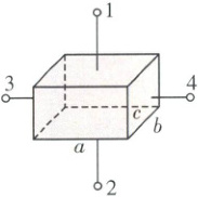 1、2、3、4。在1、2两端加上恒定电压,导体的电阻为$R_1$;在3、4两端加上恒定电压,导体的电阻