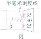 (3) 如图丙所示的螺旋测微器的读数为$ mm $。