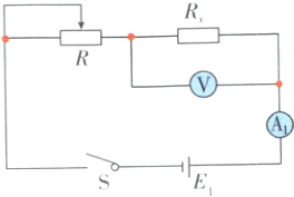 [解析]实验器材选择的一般步骤是:①选出唯一性器材;②画电路图(暂不接入电流表、电压表);③估算电流和电压的最大值,在考虑电表指针有较大偏转但不超过量程的情况下,结合已知实验器材的规格,确定实验电路和其他实验器材。因此要善于进行电路的估算。通过估算确定实验器材。由于待测电阻$R_x$阻值约为4Ω,额定电流约为0.5A,电流表量程选0.6A,即$A_1$;根据欧姆定律可得待测金属丝两端最大电压约为$U = IR_x = 2V$,所以电源选$E_1$。因此,电路图如图所示。