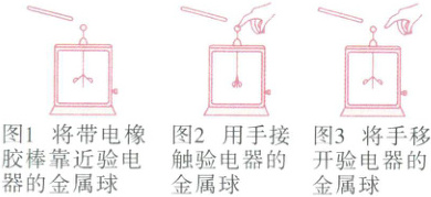 ③接着先把手移开,再把橡胶棒移开(如图 3 所示)。关于验电器的金属箔片张开的情况及分析,以下说法正确的是(