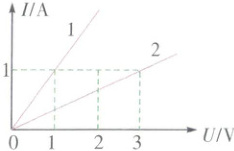 1.(2025·广东八校联考·知识点 1) 如图所示,图线 1 表示的导体的电阻为 $R_1$,图线 2 表示的导体的电阻为 $R_2$,则下列说法正确的是(