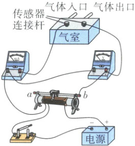 (2) 连接好实验器材,把氧气含量为$ 1\% $的气瓶接到气体入口。