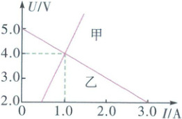 解 甲反映定值电阻$R$的$U - I$关系,$R = \frac{4.0\ V}{1.0\ A} = 4\ \Omega$,故A正确;乙反映电源的$U - I$关系,根据闭合电路欧姆定律得电源所在电路的路端电压$U = E - Ir$,当$I = 0$时$U = E$,即电源电动势$E = 5.0\ V$,故B正确;电源的内阻$r$等于乙图线斜率绝对值的大小,即$r = \frac{5.0 - 4.0}{1.0 - 0}\ \Omega = 1\ \Omega$,电源短路电流$I_{ 短} = \frac{E}{r} = 5\ A$,故C、D错误。