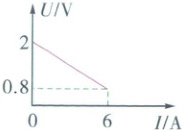 解 由闭合电路欧姆定律有$U = E - Ir$,当$I = 0$时,$U = E$,由题图读出电源的电动势$E = 2\ V$,故A正确。电源的内阻等于图线斜率的绝对值,则有$r = \left| \frac{\Delta U}{\Delta I} \right| = \frac{2 - 0.8}{6}\ \Omega = 0.2\ \Omega$,故B错误。电源短路时路端电压$U = 0$,电流$I_{ 短} = \frac{E}{r} = \frac{2}{0.2}\ A = 10\ A$,故C错误。当路端电压$U = 1\ V$时,由$E = U + Ir$,可得$I = \frac{E - U}{r} = \frac{2 - 1}{0.2}\ A = 5\ A$,故D正确。