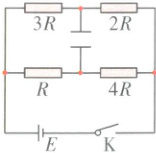 如图所示电路,已知电源电动势为$E$,内阻不计,电容器电容为$C$,闭合开关$ K$,待电路稳定后,电容器上电荷量为()。